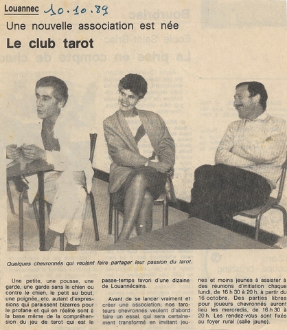 Le club de Tarot de Louannec a été crée le 10 octobre 1989 à l'initiative d'un groupe d'amis sous forle d'une Assciation loi 1901.